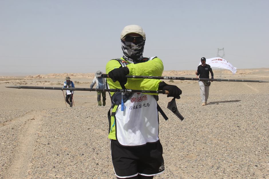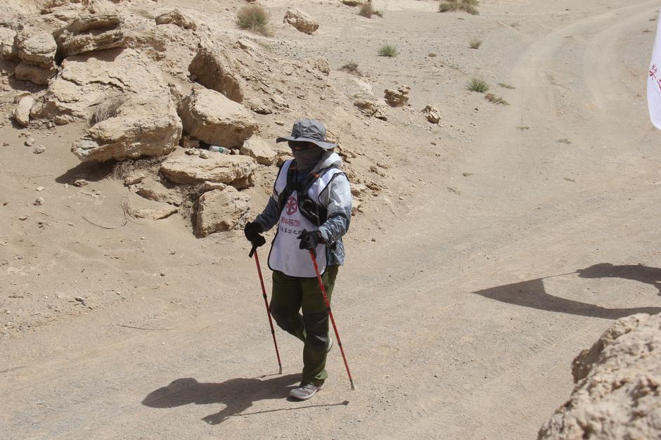 無盡的蒼茫戈壁,沿途都是荊棘、沙石、坑洼以及綿延不絕的戈壁溝壑,漫漫長路和炙熱的陽光考驗著每個隊員。