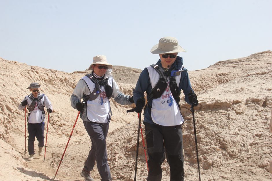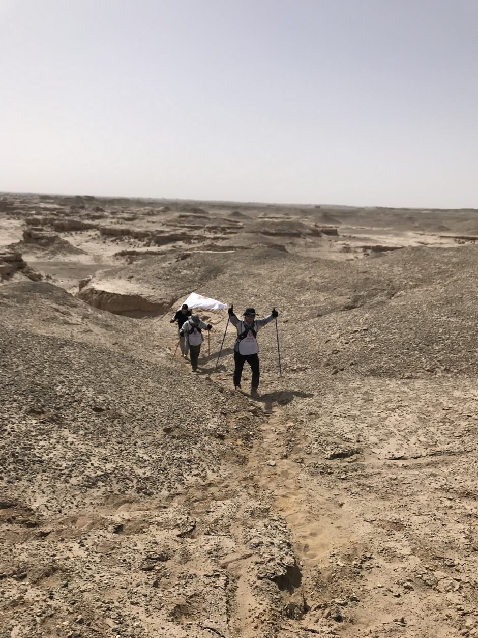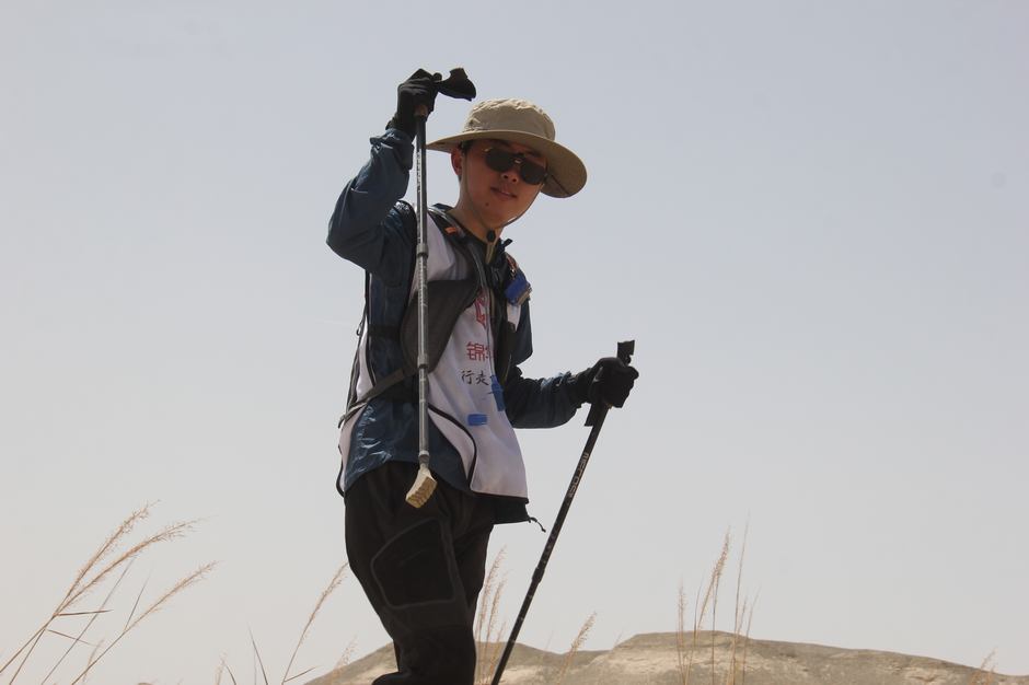 相比于城市里的溫潤,大漠戈壁里的天氣可謂是非常不友好,近40度高溫,伴隨著干燥與風沙…兩天50公里徒步路,對于我們,不僅是生理上,更是心理上的挑戰!